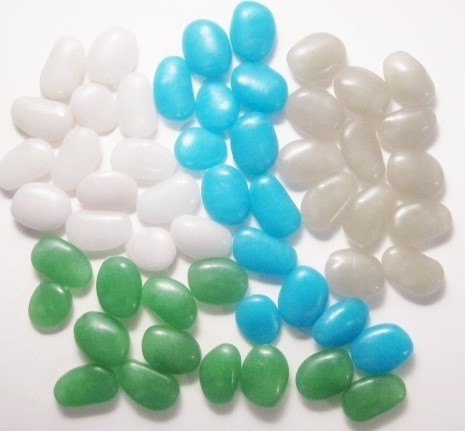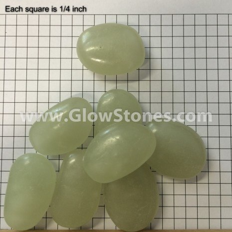 Plastic River Glow Stones contain approximately 57 pcs/lb. There glow stones are similar in shape to river stones, and are comprised of a mix of th stones in the following 4 sizes.
